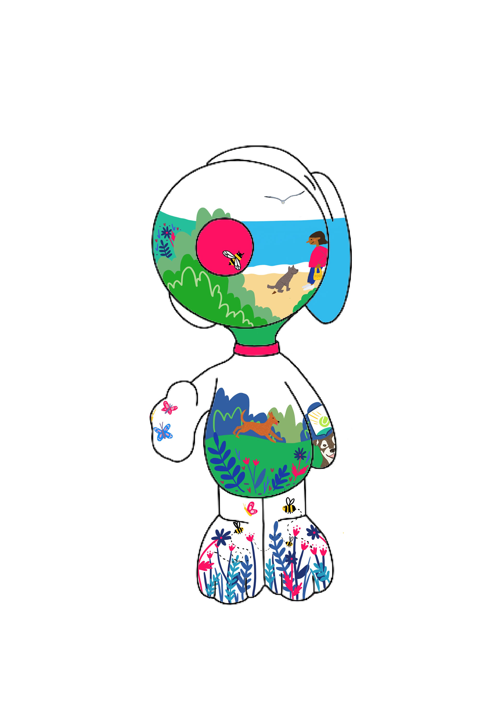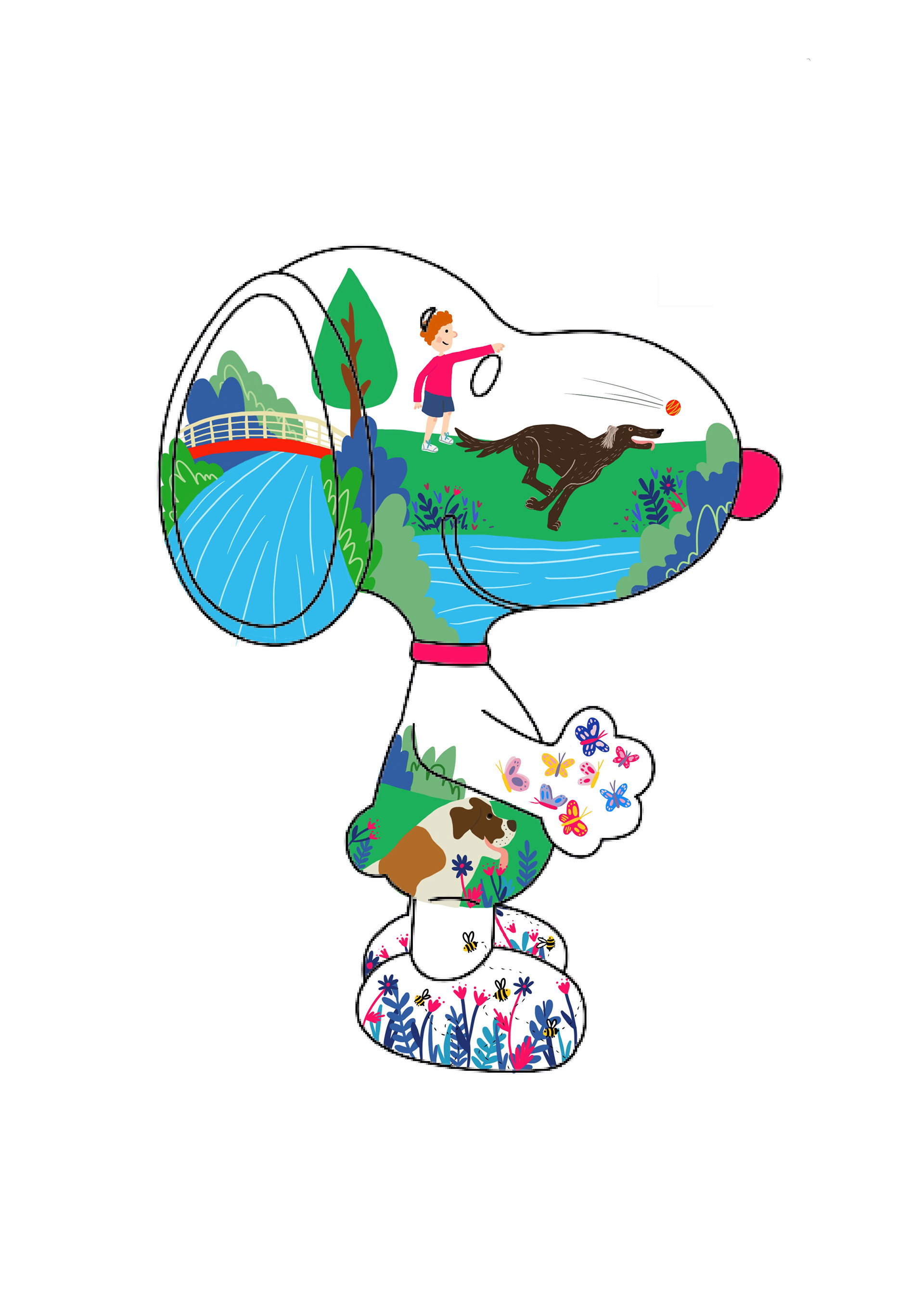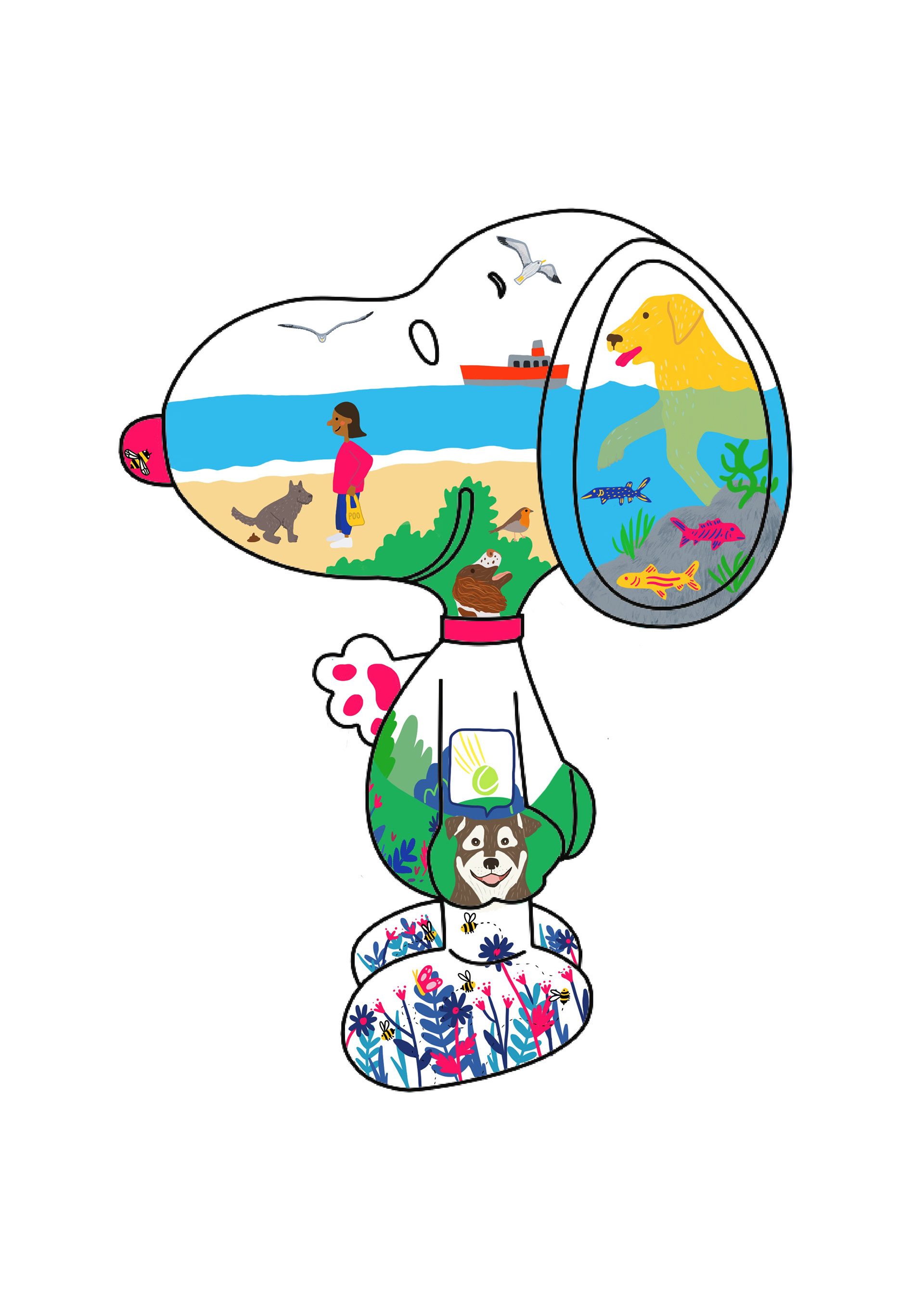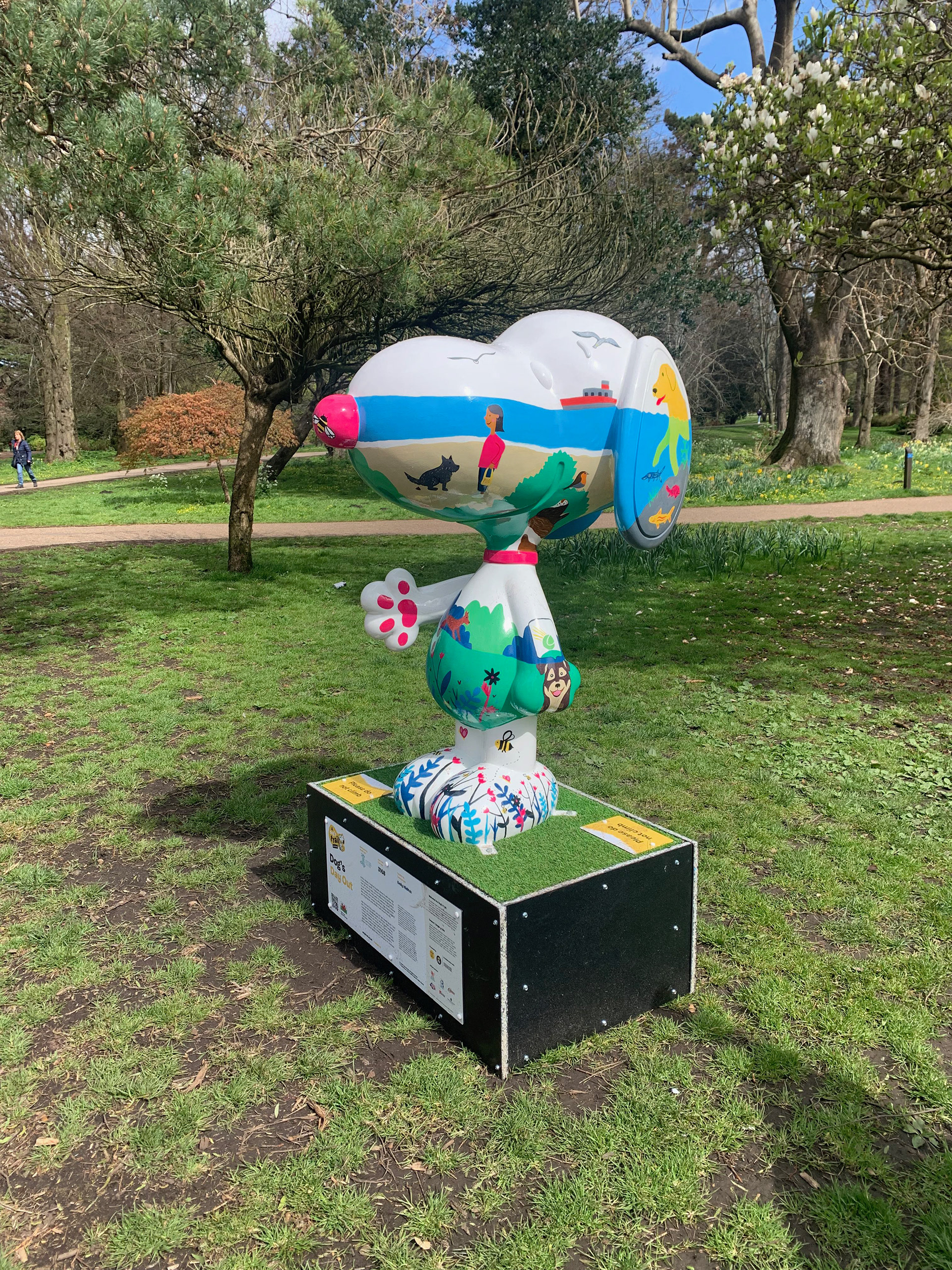 A painted Snoopy statue for a sculpture trail organised by Dogs Trust held in Cardiff. Mixed Media.