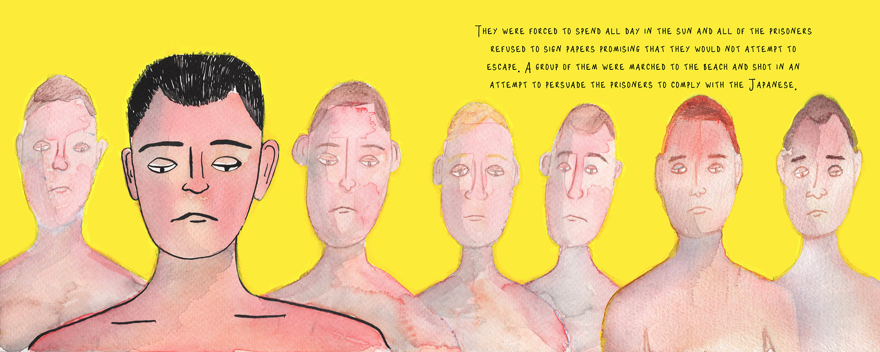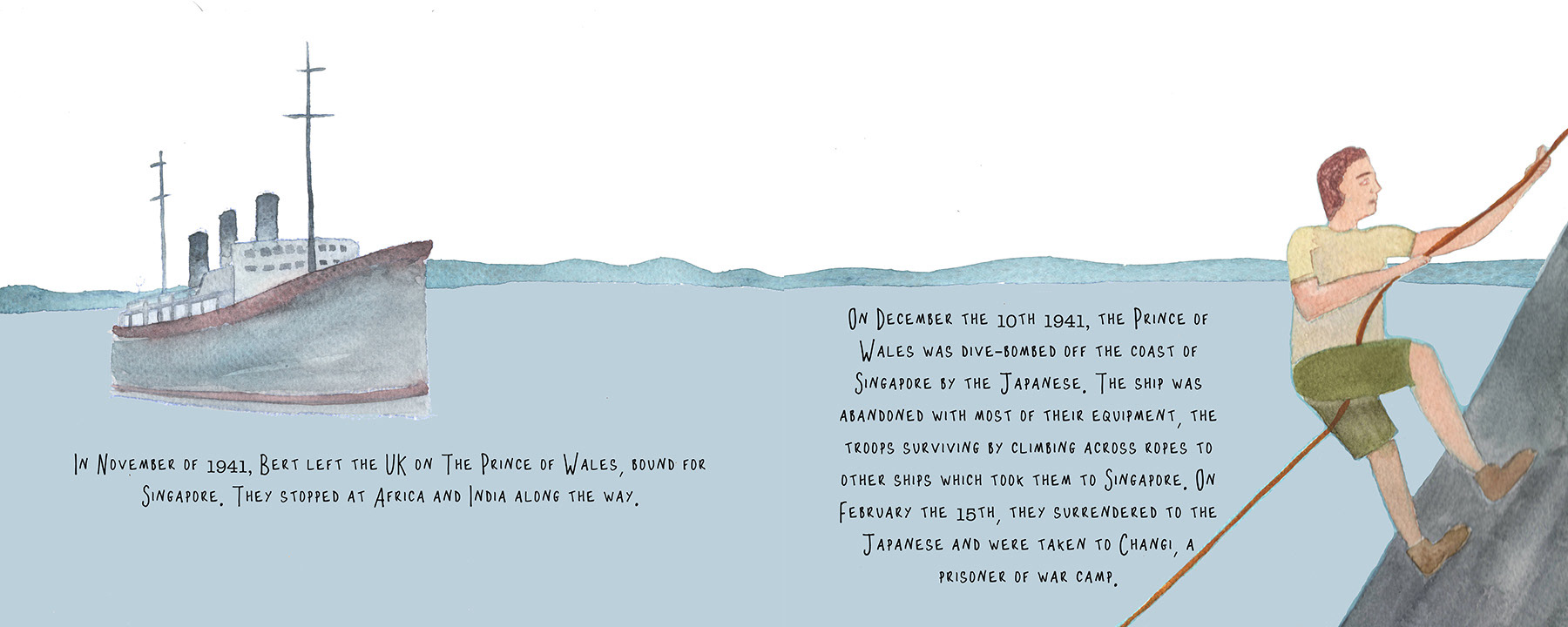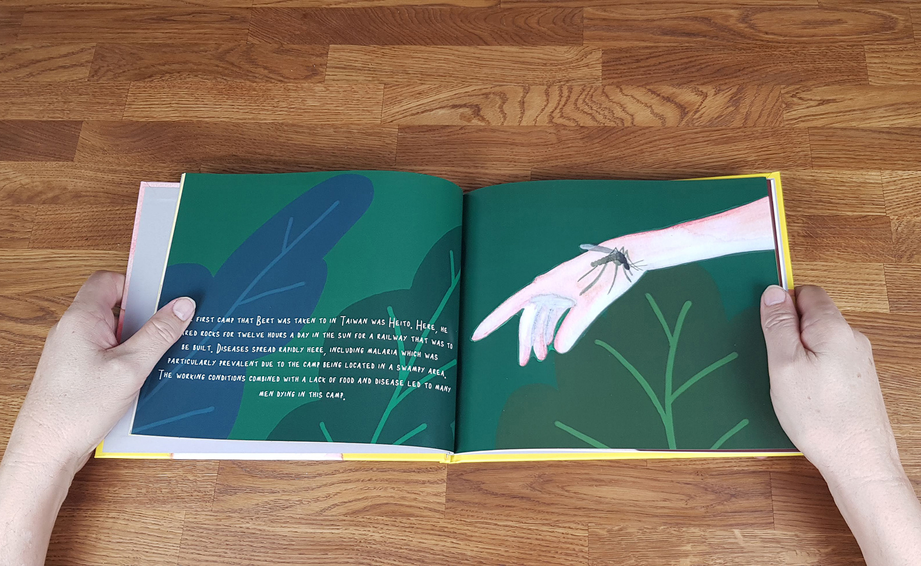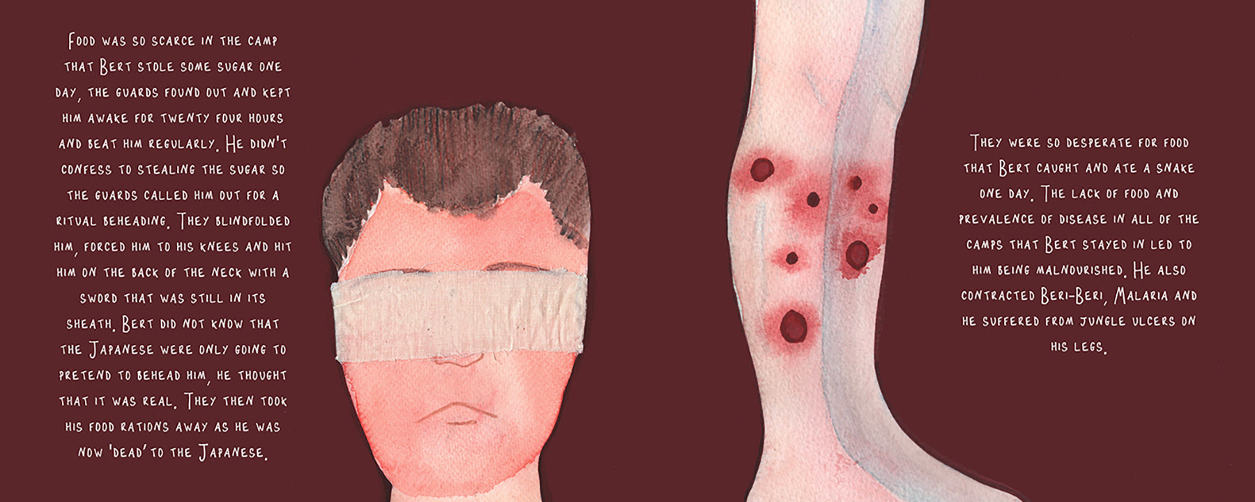 An illustrated book about a prisoner of war in the Far East during the Second World War. Mixed media.
