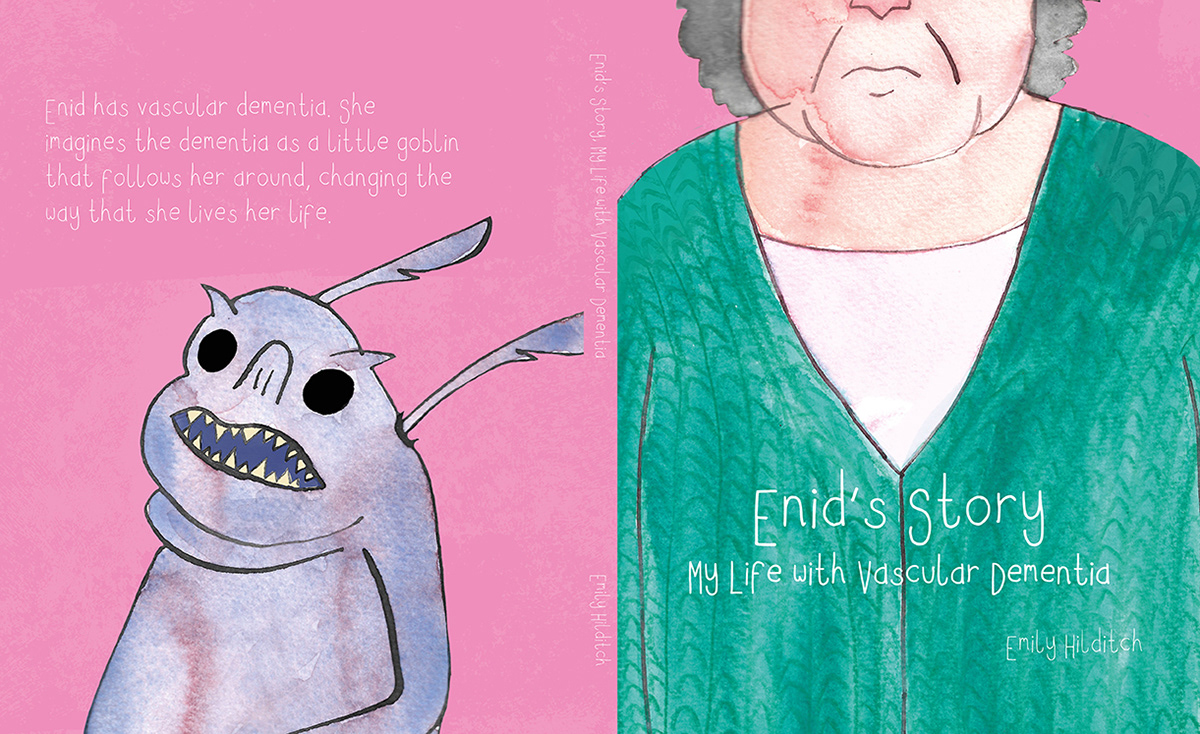 A factual illustrated book about vascular dementia, teaching people about the other, lesser known symptoms and what life is like for those who live with it. Mixed media.