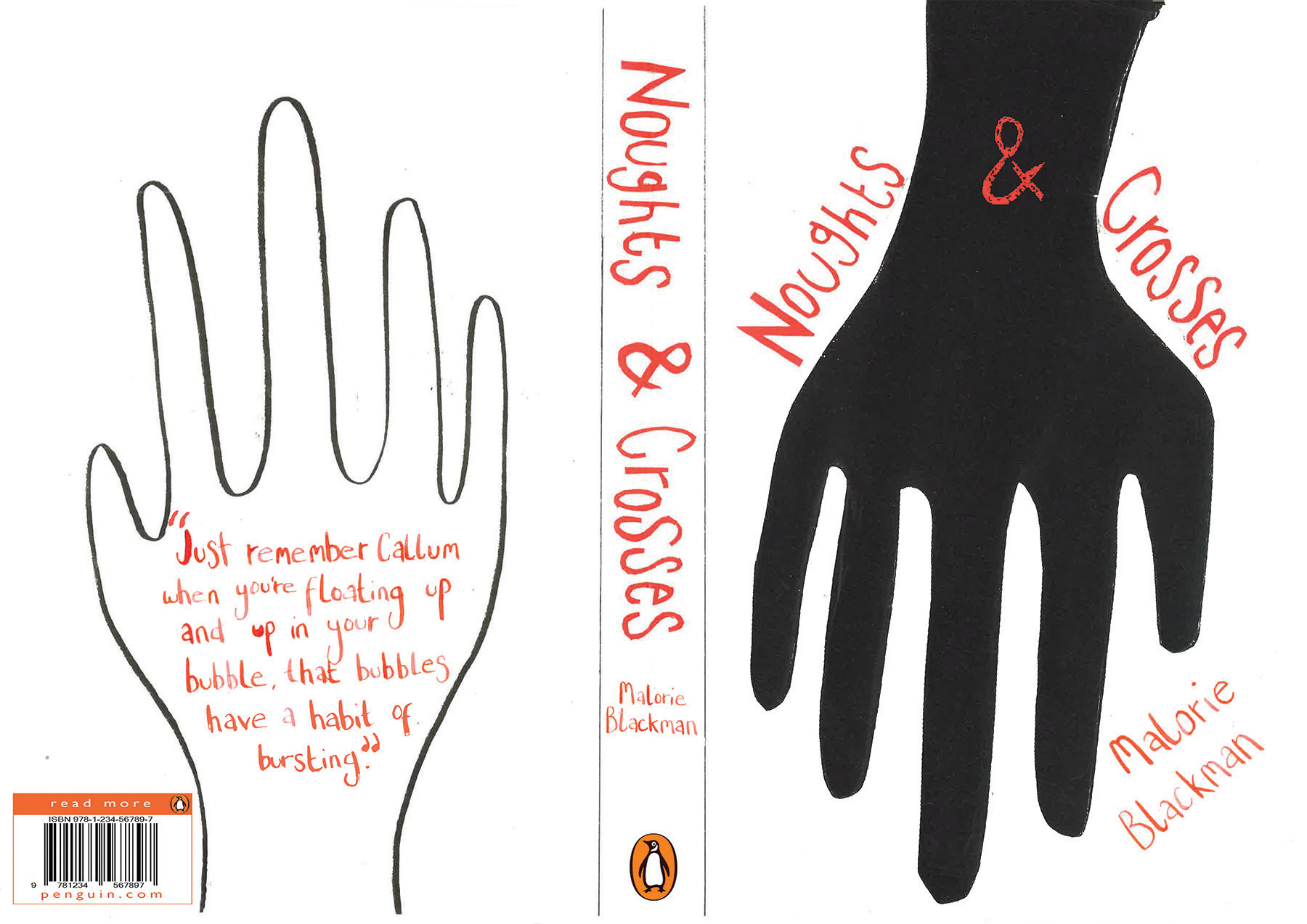 A book cover design for 'Noughts and Crosses' by Malorie Blackman. Collage.